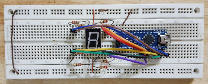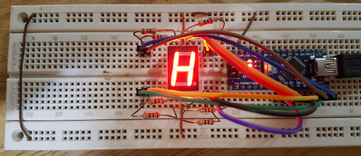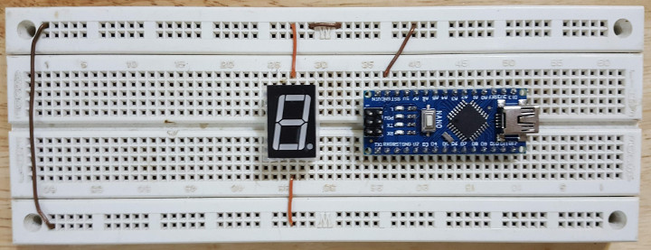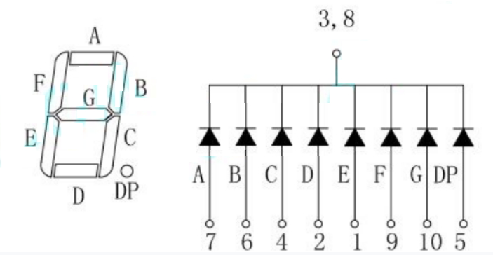 定義 Arduino 5~12 分別對應到數碼管的 DP, A, B, C, D, E, F, G 等腳位